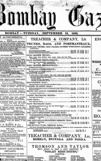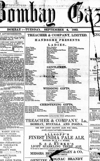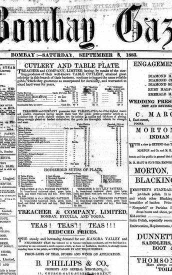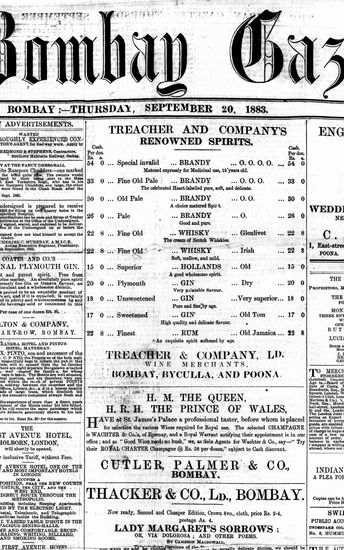 The Bombay Gazette, 18 September 1883