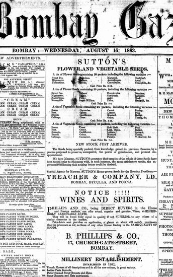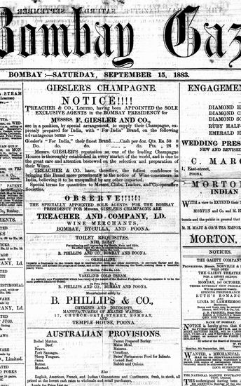 The Bombay Gazette, 18 October 1883