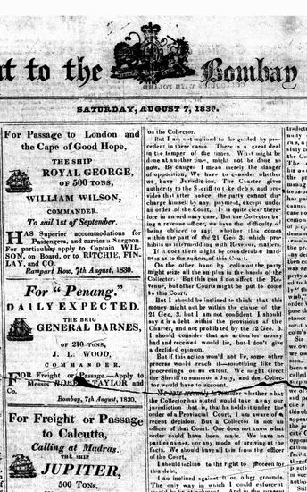 The Bombay Gazette (Weekly Edition), 7 August 1830