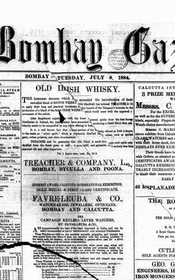 The Bombay Gazette, 8 July 1884