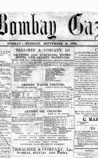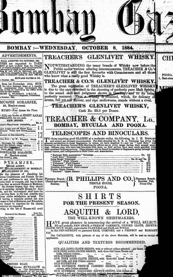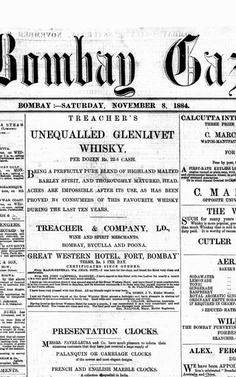 The Bombay Gazette, 8 October 1884