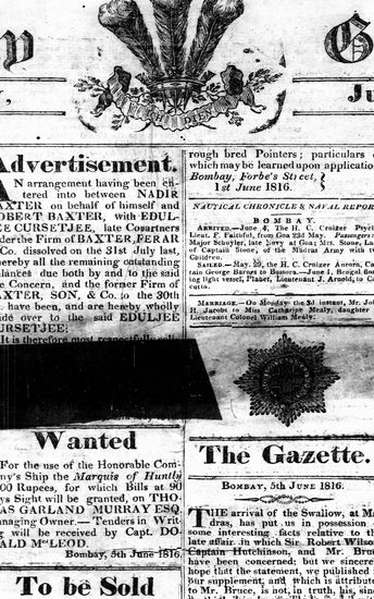 The Bombay Gazette (Weekly Edition), 19 June 1816