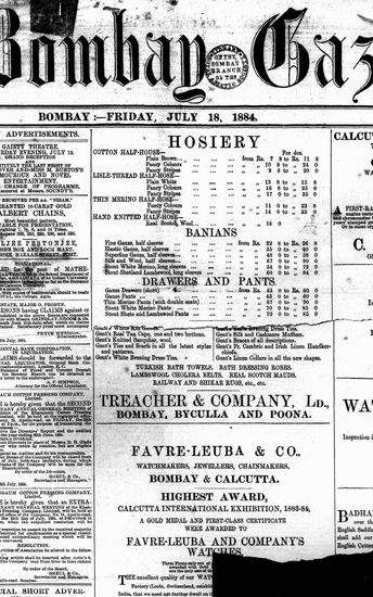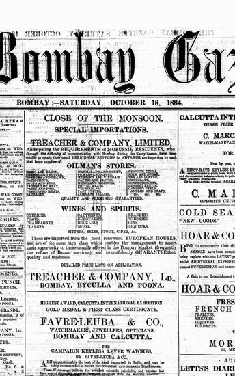 The Bombay Gazette, 18 October 1884