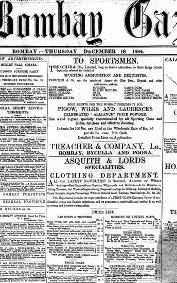The Bombay Gazette, 18 December 1884