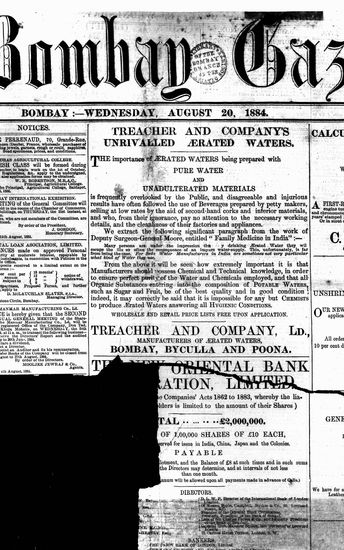 The Bombay Gazette, 13 October 1884