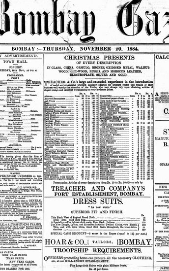 The Bombay Gazette, 20 December 1884