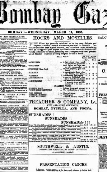 The Bombay Gazette, 11 March 1885