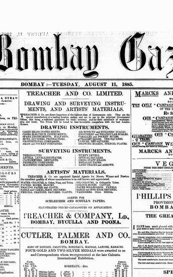 The Bombay Gazette, 11 August 1885
