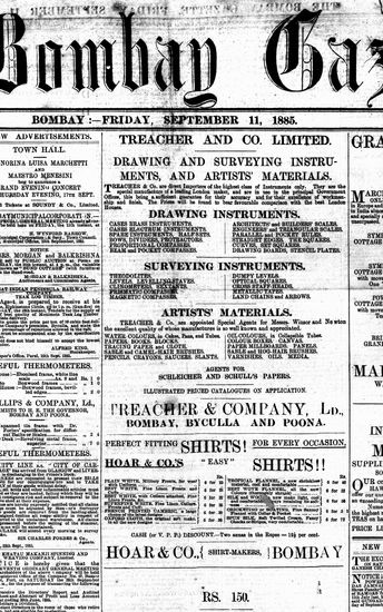 The Bombay Gazette, 11 September 1885