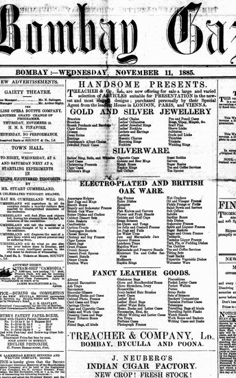 The Bombay Gazette, 11 November 1885