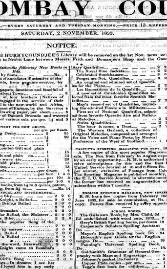 Bombay Courier, 9 November 1833
