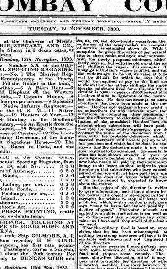 Bombay Courier, 12 November 1833