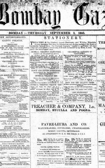 The Bombay Gazette, 3 September 1885