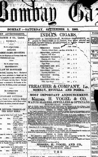 The Bombay Gazette, 17 October 1885