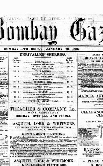 The Bombay Gazette, 28 January 1886