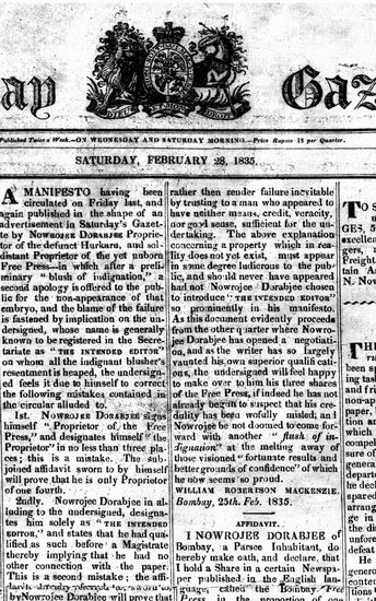 The Bombay Gazette (Weekly Edition), 28 February 1835