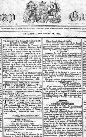 The Bombay Gazette (Weekly Edition), 28 October 1835