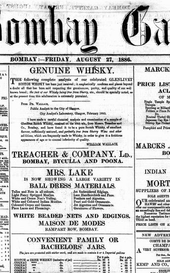 The Bombay Gazette, 27 October 1886