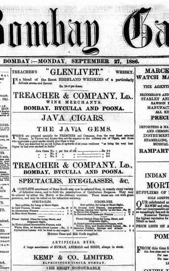 The Bombay Gazette, 27 September 1886