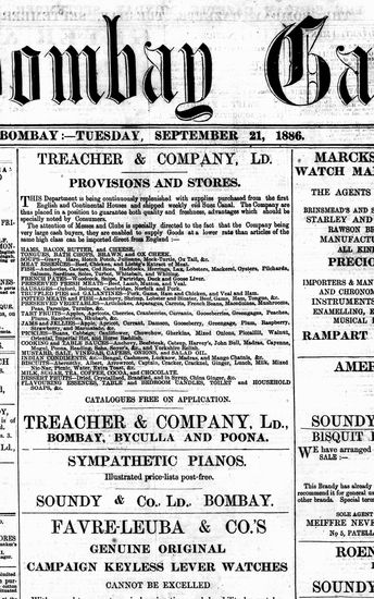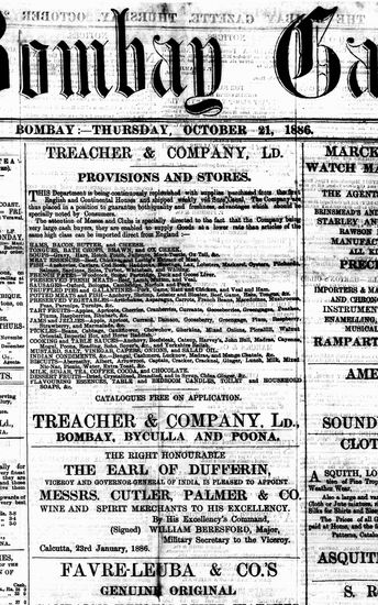 The Bombay Gazette, 21 October 1886