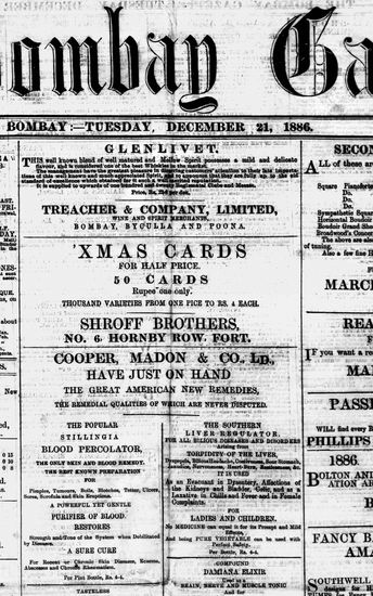 The Bombay Gazette, 21 December 1886