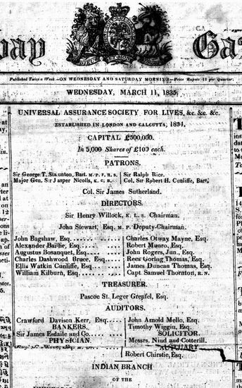 The Bombay Gazette, 11 March 1835