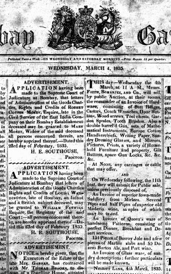 The Bombay Gazette (Weekly Edition), 28 October 1835