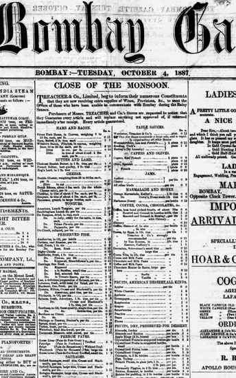 The Bombay Gazette, 4 October 1887