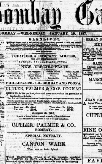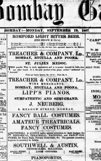The Bombay Gazette, 19 October 1887