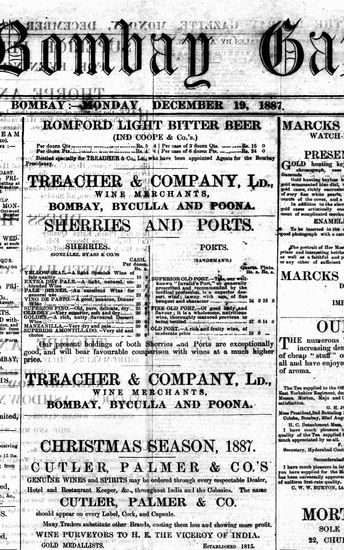 The Bombay Gazette, 19 December 1887