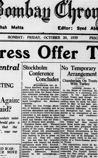 The Bombay Chronicle, 20 October 1939