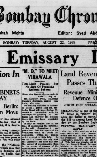 The Bombay Chronicle, 22 August 1939