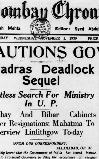 The Bombay Chronicle, 30 October 1939