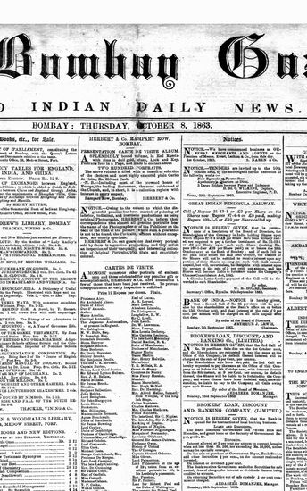 The Bombay Gazette, 8 October 1863