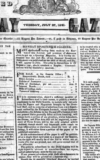 The Bombay Gazette, 27 July 1841