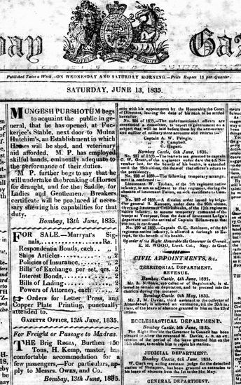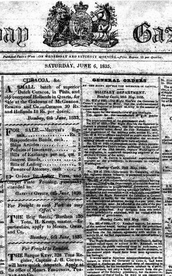 The Bombay Gazette (Weekly Edition), 3 June 1835