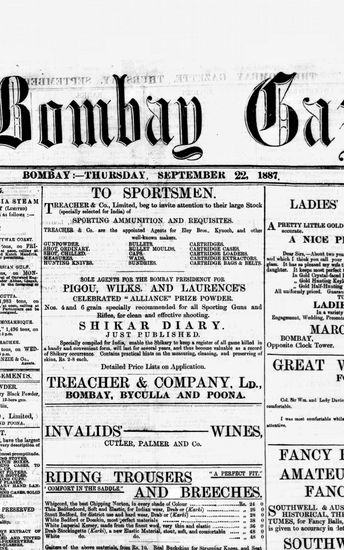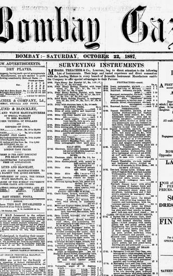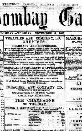 The Bombay Gazette, 22 October 1887