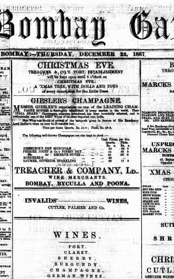 The Bombay Gazette, 22 December 1887
