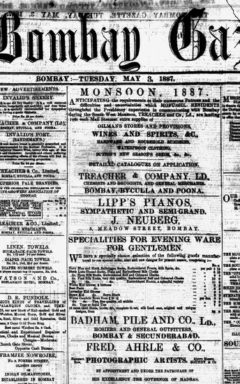 The Bombay Gazette, 3 May 1887