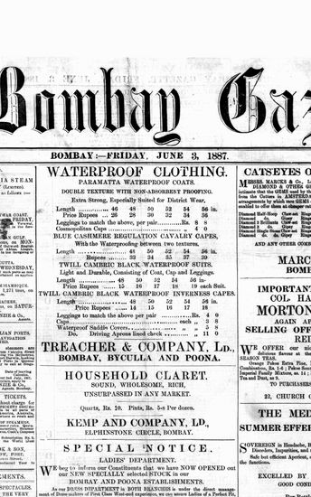 The Bombay Gazette, 3 June 1887