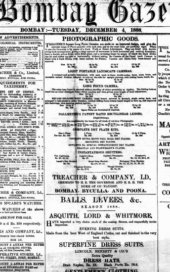 The Bombay Gazette, 4 December 1888