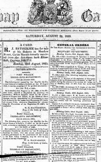 The Bombay Gazette (Weekly Edition), 10 August 1835