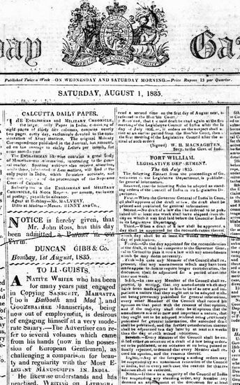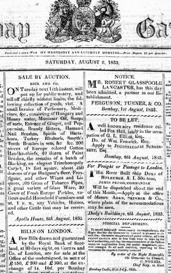 The Bombay Gazette, 19 August 1835