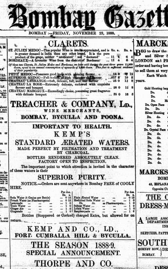 The Bombay Gazette, 17 November 1888