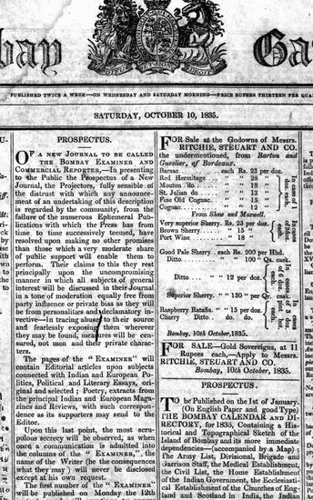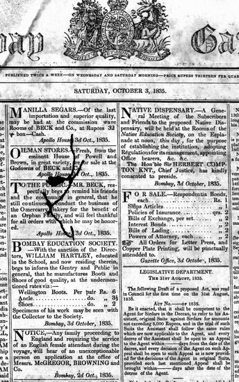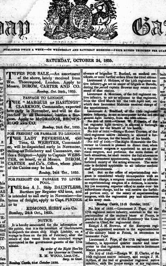 The Bombay Gazette, 17 October 1835