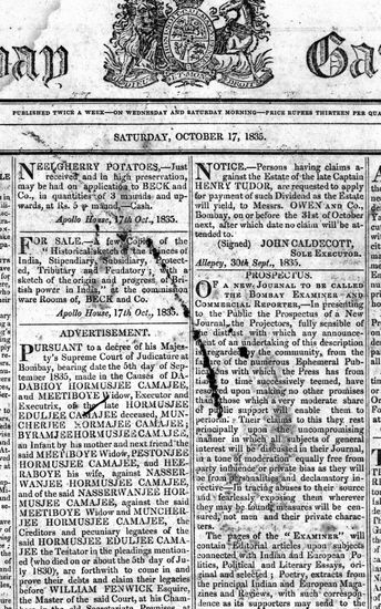 The Bombay Gazette, 7 October 1835