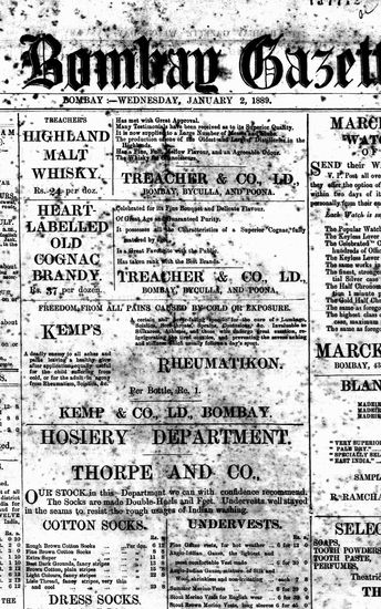 The Bombay Gazette, 2 January 1889