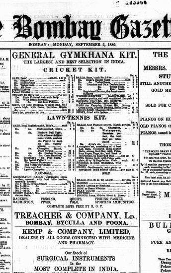The Bombay Gazette, 2 September 1889