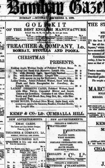 The Bombay Gazette, 2 December 1889