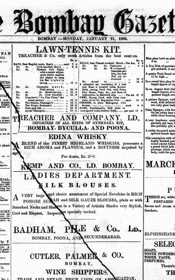 The Bombay Gazette, 21 January 1889